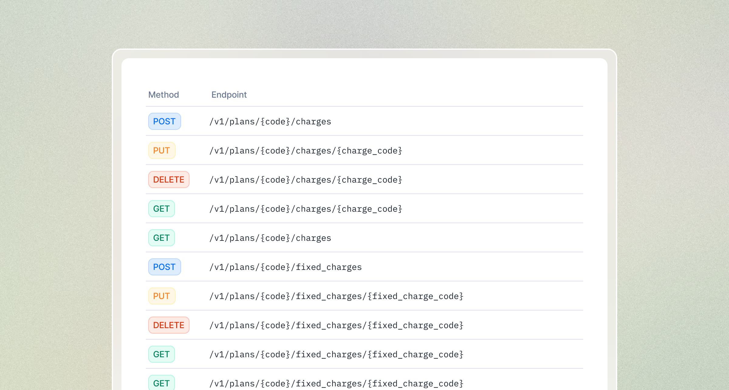 - Plan fixed charges — See API reference