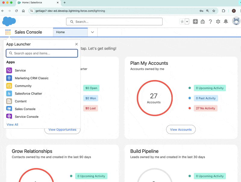 - Access Salesforce and locate the App Launcher;