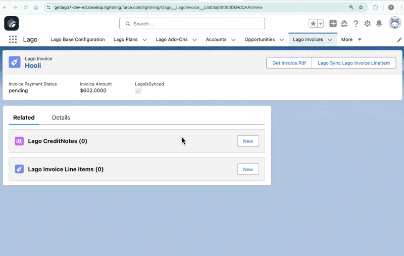 Now we can also get invoice pdf directly directly from Salesforce.- Go to Lago Invoice