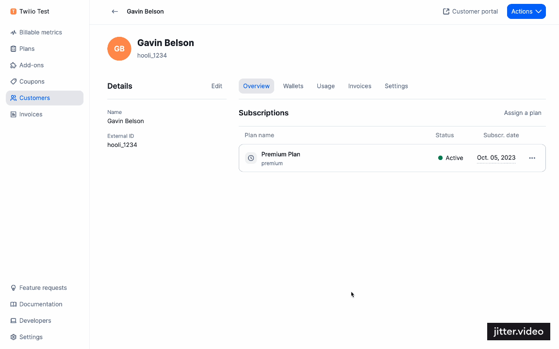 - Click on ‘Lago Override Plan’ to finalize the subscription assignment.